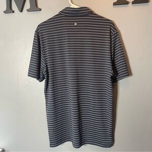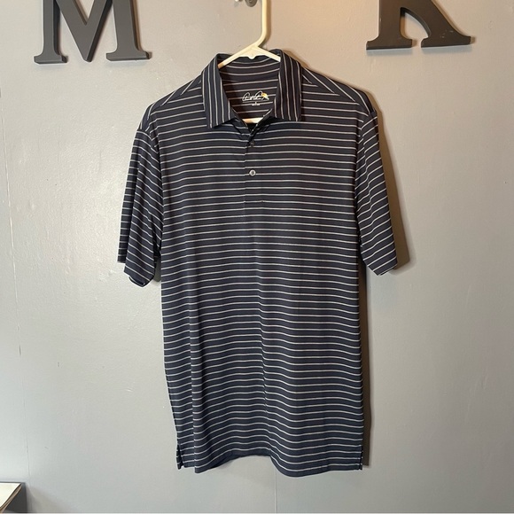 Arnold Palmer Men's Striped Polo golf Shirt - Navy Blue and white size medium