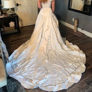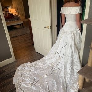 Only wrinkled in photos because it has been sealed since 1991. Worn once. This gown is SO stunning. The pictures do not do is justice whatsoever. Hand beaded details that are truly exquisite. Fits like a glove and is very flattering.