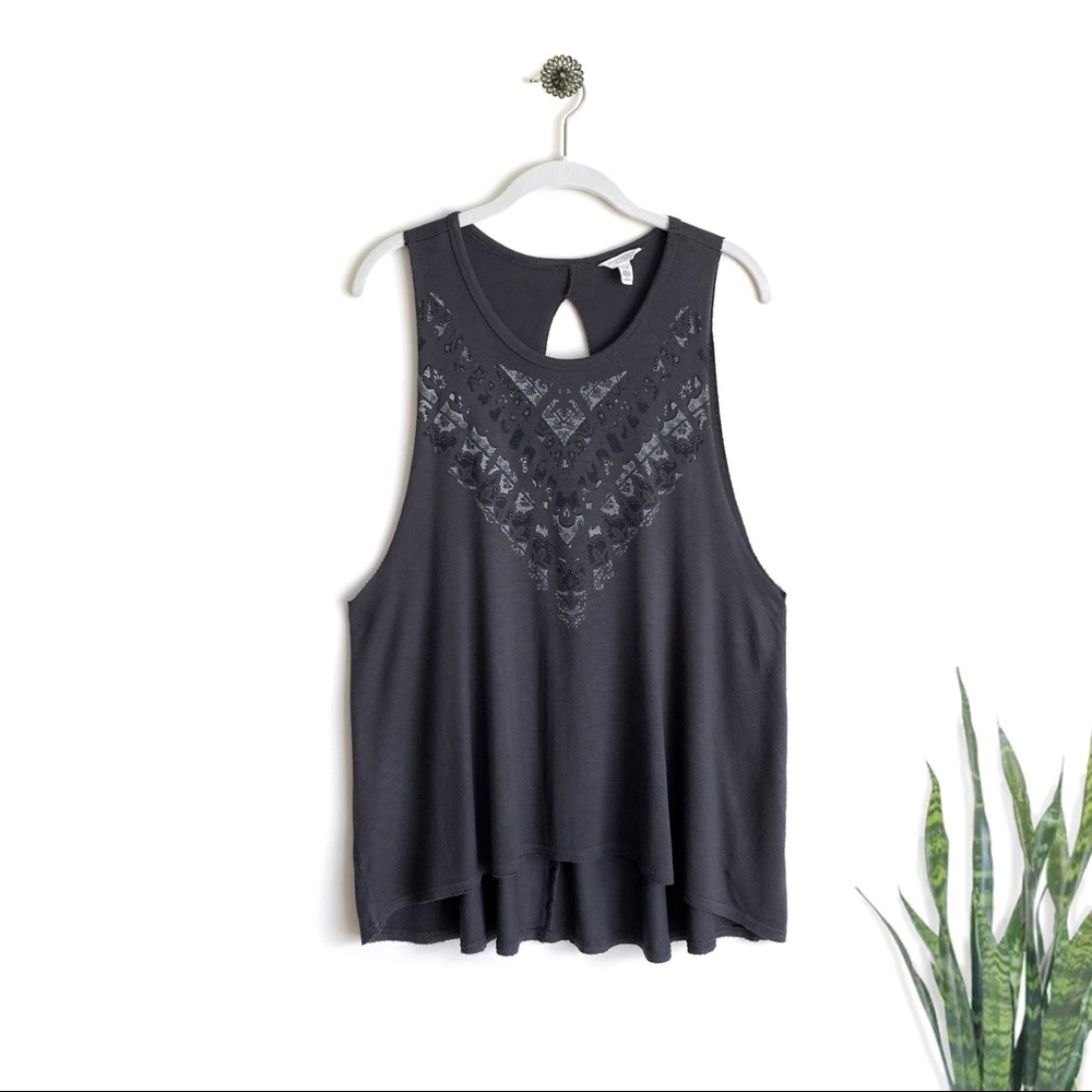 Aeropostale tribal print muscle tank with keyhole in back, perfect for layering with a bralette. Super stretchy & comfortable. Raw edges. Slight high/low. Bralette pictured is not included in this listing.