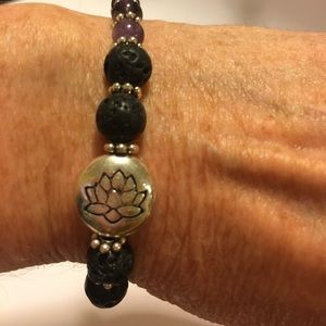 This is a beautiful handmade amethyst & lava stone stretch bracelet has a silver lotus flower bead and is made with love for you. The lava stone is grounding & will carry your favorite essential oil all day. The genuine amethyst is one of the most spiritual stones. Known for it’s recovery & healing attributes.