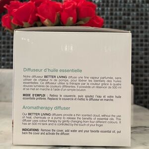 NEW Better living Aromatherapy diffuser in a Imitation Wooden look style. this aromatherapy diffuser uses light therapy. Changes to 4 different colors see picture of box for colors. Has a 500ml tank. USB powered for easy use. New in box. Gift the gift of relaxation.