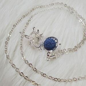 Aromatherapy necklace turtle shape with natural lava rock stone.