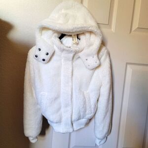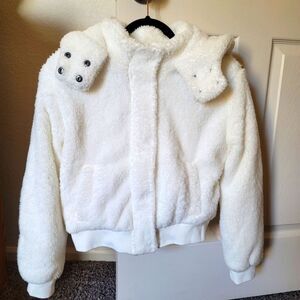 Aéropostale Coat White Sherpa Faux Fur Cropped Jacket Women’s - Size Small NWT