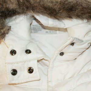 Remove fur before washing. Machine wash cold separately with mild detergent in large capacity washer gentle cycle. Do not bleach. Tumble dry low in large capacity dryer with three tennis balls. This will distribute the down evenly. Must be thoroughly dried. Do not iron or dry clean.