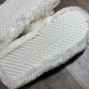 Aéropostale Flip Flop Women's Cream Faux Fur Soft Lightweight Indoor Slippers