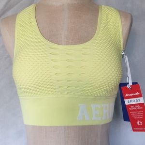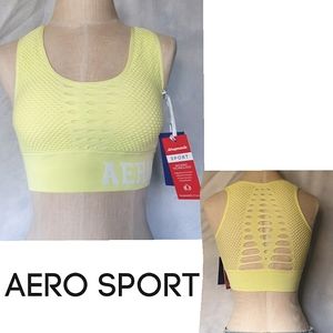 NWT Aéropostale Sport Mesh Neon Yellow Sports Bra. This Bra has Moisture Control that is made with Breathable Material that Dries Fast. It Also has Removable Padding and a Really Sexy Back Cut-Out 80's Design. Shown in Picture Above there's a Few Stray Threads that are Only Small Cosmetic Threads.