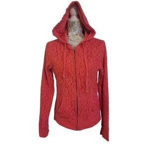 Aéropostale Pink Lace Hoodie Sweatshirt Lightweight Jacket sz L in EXCELLENT condition!