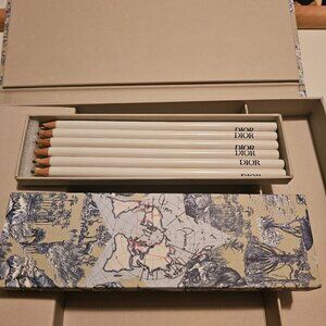Brand New - Limited Edition Dior Around the World notebook set in blue and white. Perfect for a collector or can be used in an office. Set includes notebook/journal, six pre-sharpened pencils and decorative magnetic closure matching gift box.