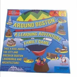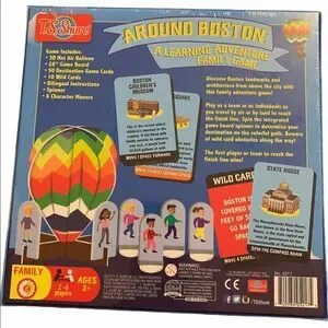 T.S. Shure family game. Discover Boston landmarks from above the city with this family adventure game. Game includes: 3D hot air balloon, 28” game board, 50 destination game cards, 10 wild cards, bilingual instructions, spinner, and 6 character movers. Ages 3+. 2-6 players. NIB.