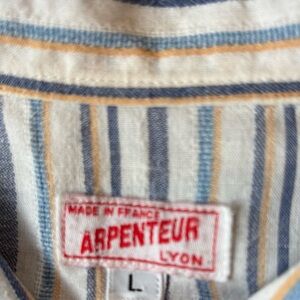 Lyon, France based Arpenteur was founded in 2011. in their collections, designers Marc and Laurent create contemporary interpretations of traditional French workwear staples. familiar silhouettes are reinterpreted with updated fits and clever details. distinctly French fabrics and quality construction are Arpenteur's hallmarks. this shirt has only been bought & tried on—never actually worn. brand new, just missing the tags!