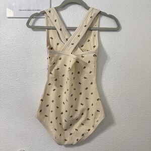 Arq Cleo Leo Bodysuit Medium Calico Yellow Dainty Organic Cotton NWT Made In USA