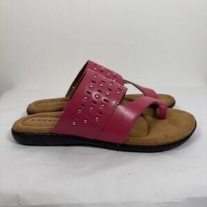 Array Catalina Sandal Hibiscus 7 1/2 Pink Toe Loop Leather Slip On Beach Summer