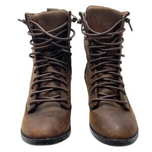 Beautiful brown leather equestrian style lace-up boots. For added comfort there is a thick padded tongue. Of interior of shoes there is a zipper for ease of use.
