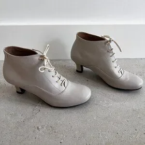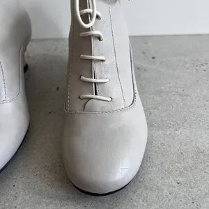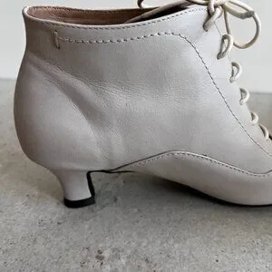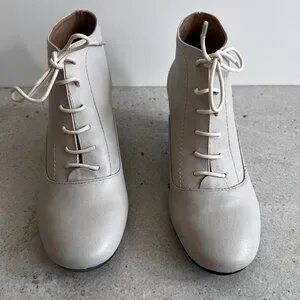 These soft white lace up booties are NWOB. As you can see from the photos, they do have a few slight blemishes. Kitten heel approx 2". Size 7. No smoking or pet home.