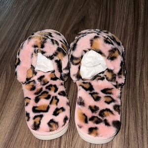 Array Pink Leopard Fuzzy Slippers