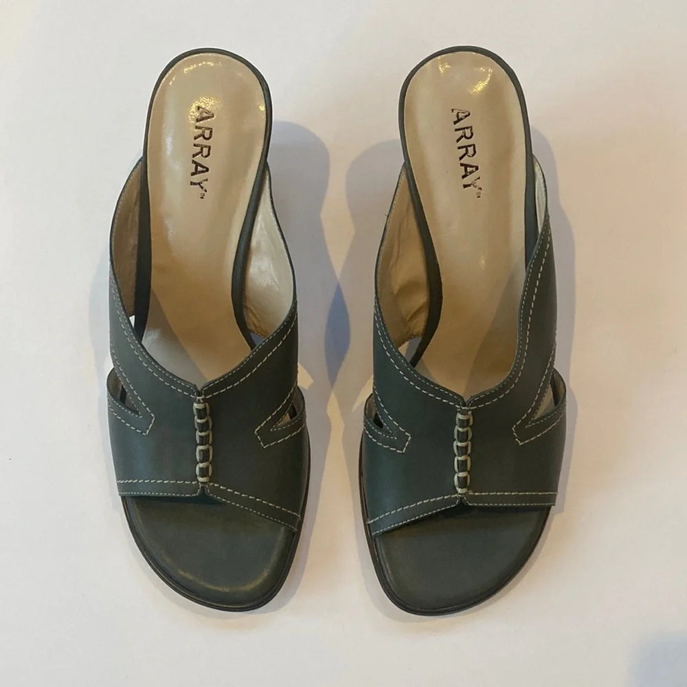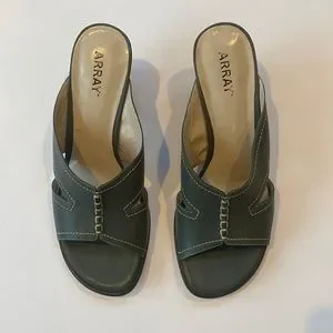 Array dusty turquoise blue leather wedge sandals
