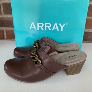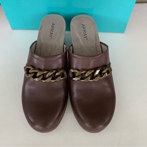 Array Womens Laurel Brown Leather slide block heel Mules Shoes US 8.5 N narrow