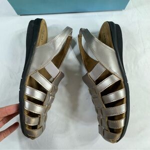 Array Womens Santa Cruz Leather Comfort Slingback Sandals - Pewter Wide