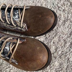 Array leather boot. Size 10 wide. Camo style. Leather sole and upper. I” heel. Zipper on side for easy