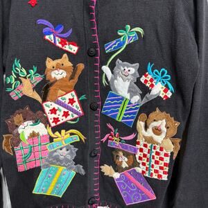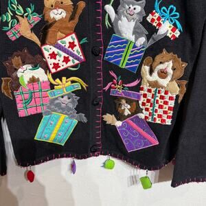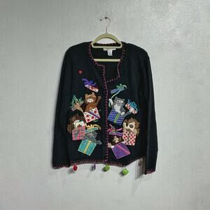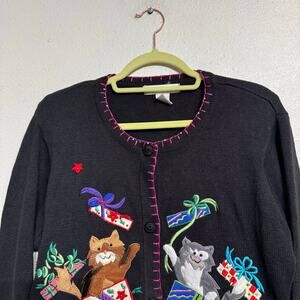 Arriviste Black Christmas Cat Vintage Cardigan Sz L