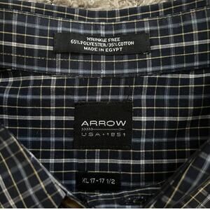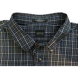 Arrow Blue Check Button-Down Shirt Mens Size XL 17-17 1/2