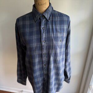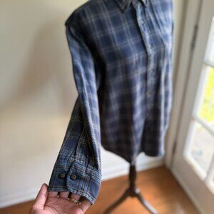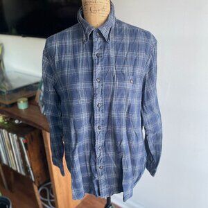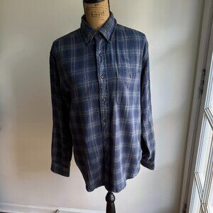 Arrow Blue Jeans Co. • Men’s Navy & Mustard Plaid Flannel Button-Down Size L