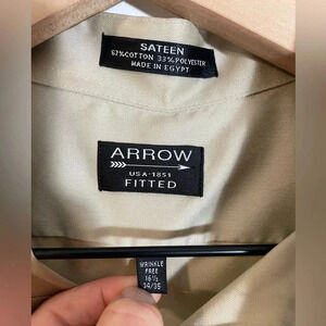 Arrow Fitted Lightweight Button Down Tan Shirt, NWOT 16.5 33/34 or Large