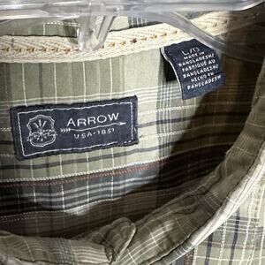 Arrow Green Shirt Mens Large Short Sleeve Plaid Casual Preppy
