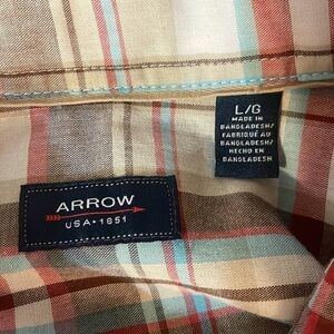Arrow Marina Beach Plaid Men Button Down Shirt Size LG - NWT