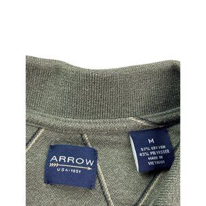 Arrow Mens Argyle Pattern Long Sleeve Polo Shirt Size M Green Black Yellow
