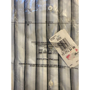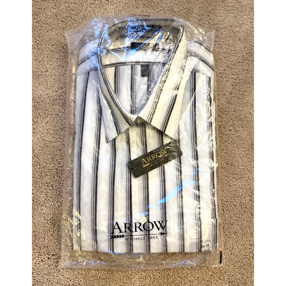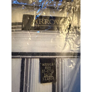 > Arrow Men's long sleeve dress shirt. Size XL (Neck 17-17.5, Sleeve 34/35). Features a "Wrinkle Free" cotton-blend fabric in a professional white and grey striped pattern. Button-down collar and chest pocket. Brand new in original factory packaging (NIB/NWT). Perfect for office wear, business casual, or church.