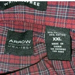 Arrow Men's Multi Maroon Plaid Wrinkle Free Long Sleeves Button Up Shirt Size XXL