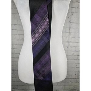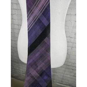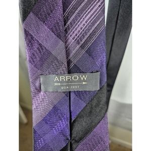 Arrow Men's Necktie 100% Silk Purple and Black Plaid Muted Pattern