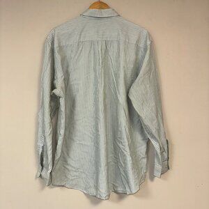Arrow Men's Wrinkle-Free Dress Shirt XL 17 - 17 1/2 Green & White Striped Cotton