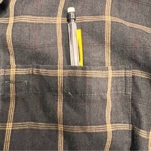 Arrow button down collared shirt. Heritage twill. USA 1851. Size 16-16 1/2. Large. Brown and tan. Long sleeve. Front pocket. 60% cotton 40% polyester