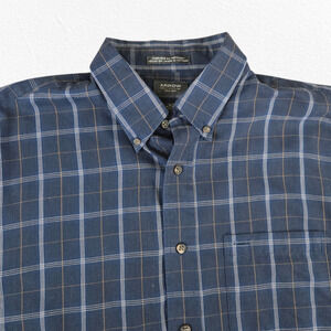 Arrow Navy Blue Plaid Classic Fit Button Down Casual Shirt Size Large 16-16.5