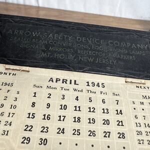 Vintage Arrow Safety Device Company in Mount Holly New Jersey Advertising Calendar from 1945