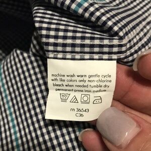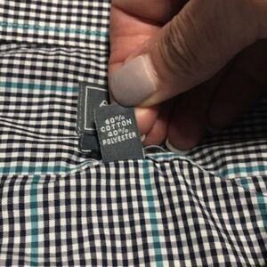 Arrow button down long sleeve shirt, wrinkle free cotton/poly blend. Excellent condition with exception of small stains on inside of right cuff. See photos. Not visible if cuff is buttoned or rolled more than one time. Please see photos for details and measurements. Non smoking home.