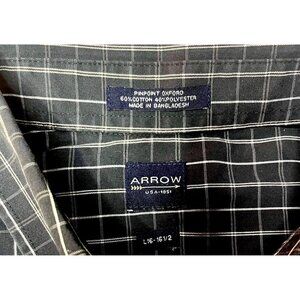 Arrow USA Mens Button-Down Navy LARGE 16-16.5 Collared Shirt Plaid Print
