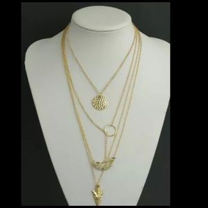 PRICE FIRM. No pp no trades. Gold tone, statement necklace, high quality. Price firm unless bundled at 10% off. Keywords for office use only: pastel, boho, delicate layered necklace, three layered necklace, glam, not black 4