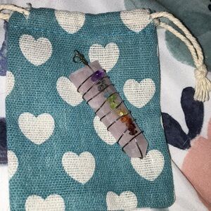 Wrapped in sterling silver with authentic crystal chakras and a rose gold arrow. Perfect to put on a sterling silver chain or black/ brown leather rope (not included.) will ship in bubble wrap same business day as purchase, smoke free home.