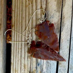 Arrowhead Stone Earrings. Silver plated wire kidney shape earring posts. Perfect gift.