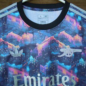 Description: Oh my days. Adidas and Arsenal have made another incredible football shirt. This one features the streets and houses of Highbury from above at dusk. What design. Gorgeous. Rare. Spectacular.