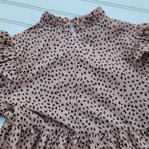 Arshiner Girls 140 Blush Pink Black Animal Print Leopard Ruffle Dress Long Sz 10