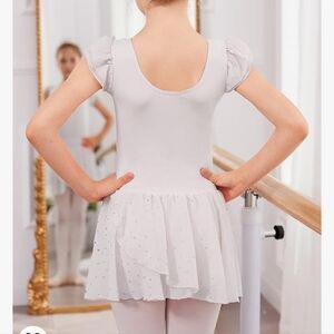 Arshiner Girls Ruffle Sleeve Ballet Dance Dress Tutu Skirted Leotard. White. Size 130 (4-5 years). New.