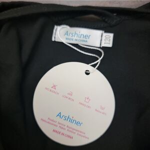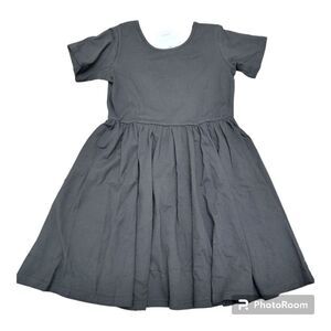 Arshiner Solid Black Dress Short Sleeve A-line Cross Back Size 120