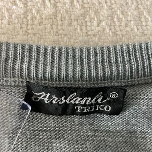 Arslanb Triko Men's V-Neck Sweater Large Light Gray Zigzag Pattern