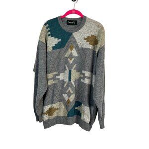 Arslanh Sweater Men L Gray Western Pullover Lambs Wool Aztec Boho Western 80s
