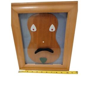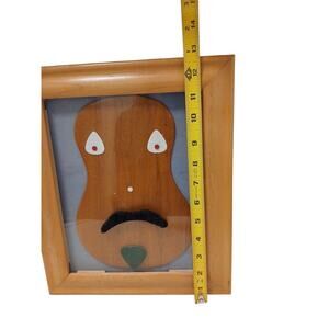 Art 3D Wood Guitar Mustache Man Signed Artist Wooden Frame Wall Hang Whimsical