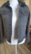 Stylish black denim jacket. Features a cozy sherpa collar. Button-up front with chest pockets. snap button, good condition, unisex jacket can fit small adult